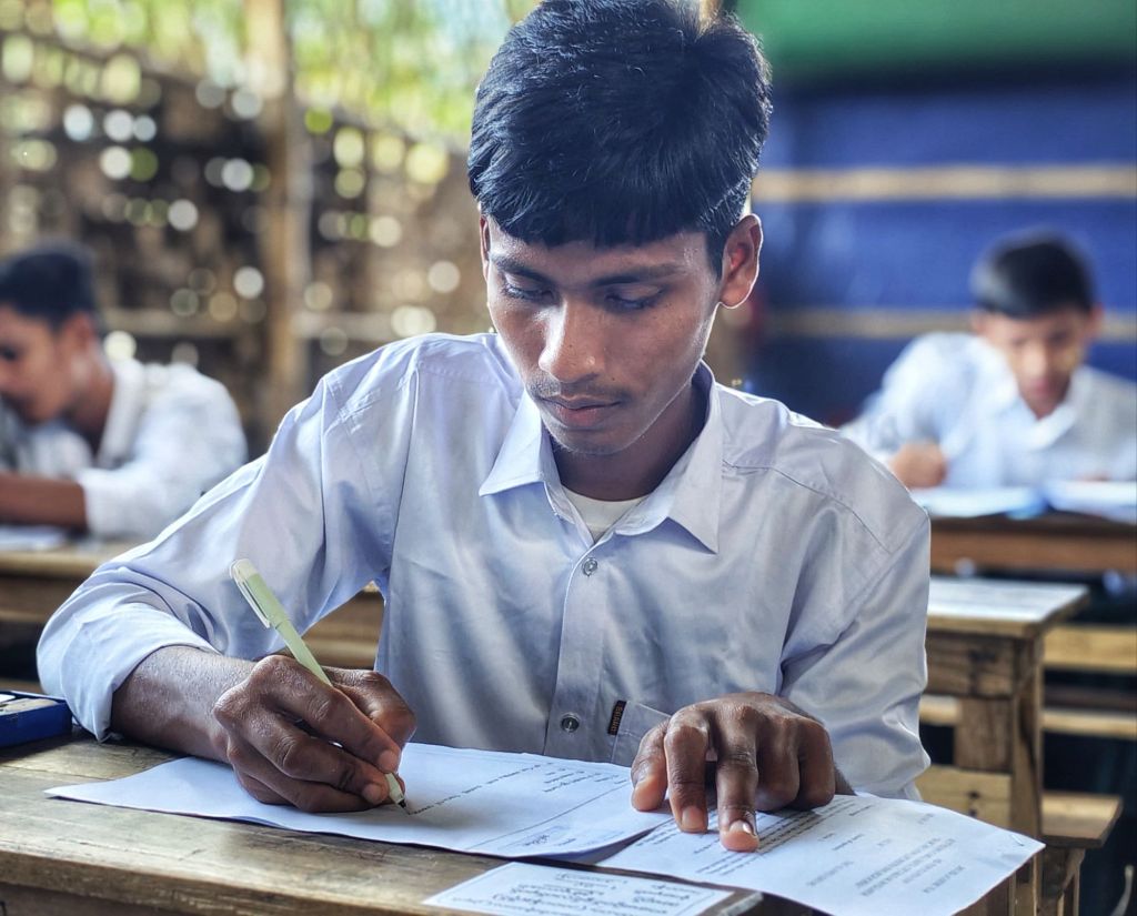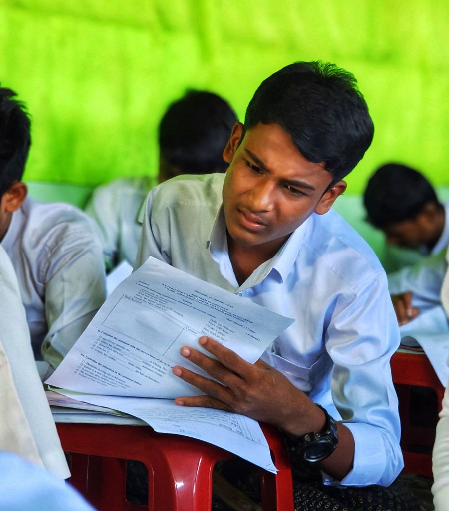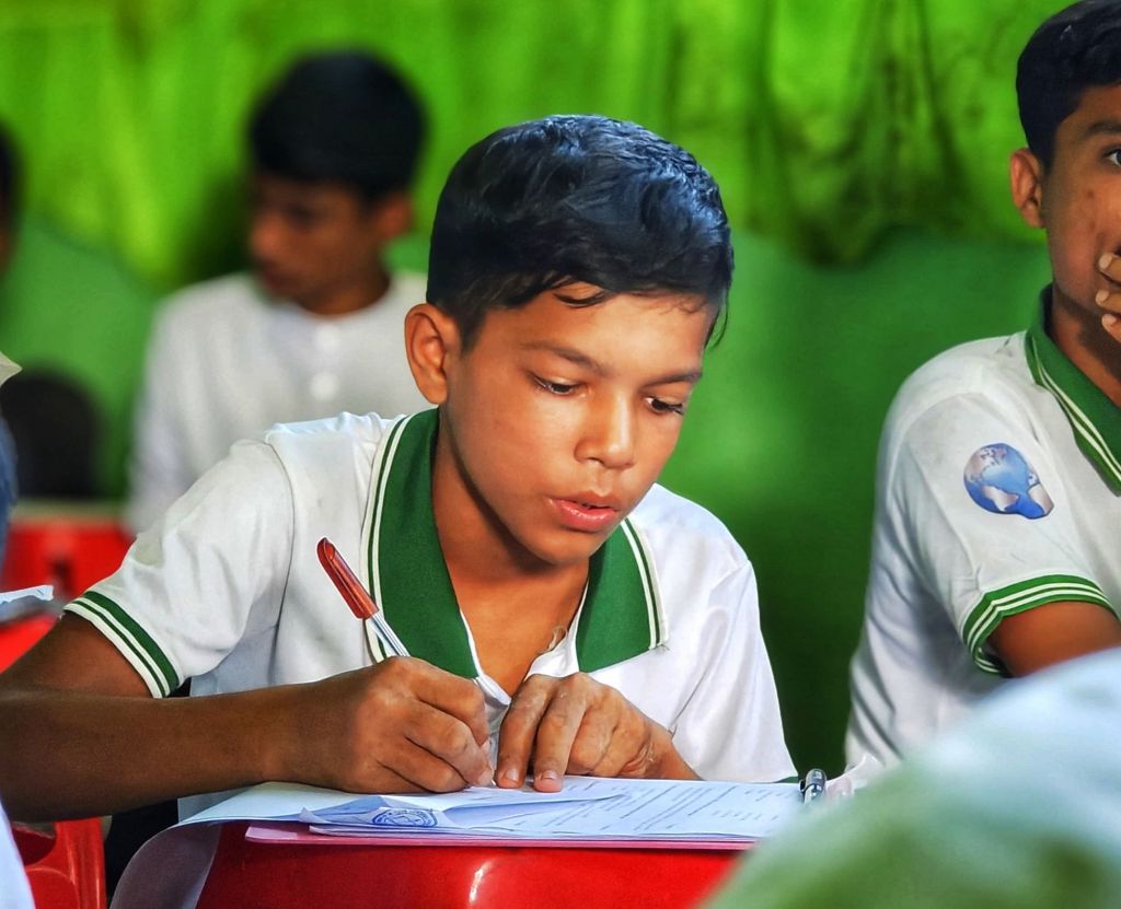 As the academic year came to an end, Ayub Khan waited anxiously for his results. The examinations had been tough, but his focus and perseverance never wavered. When the results were finally announced, his efforts were rewarded — he was named the top student in his grade and recognized across the entire Refugee Camp in Bangladesh.